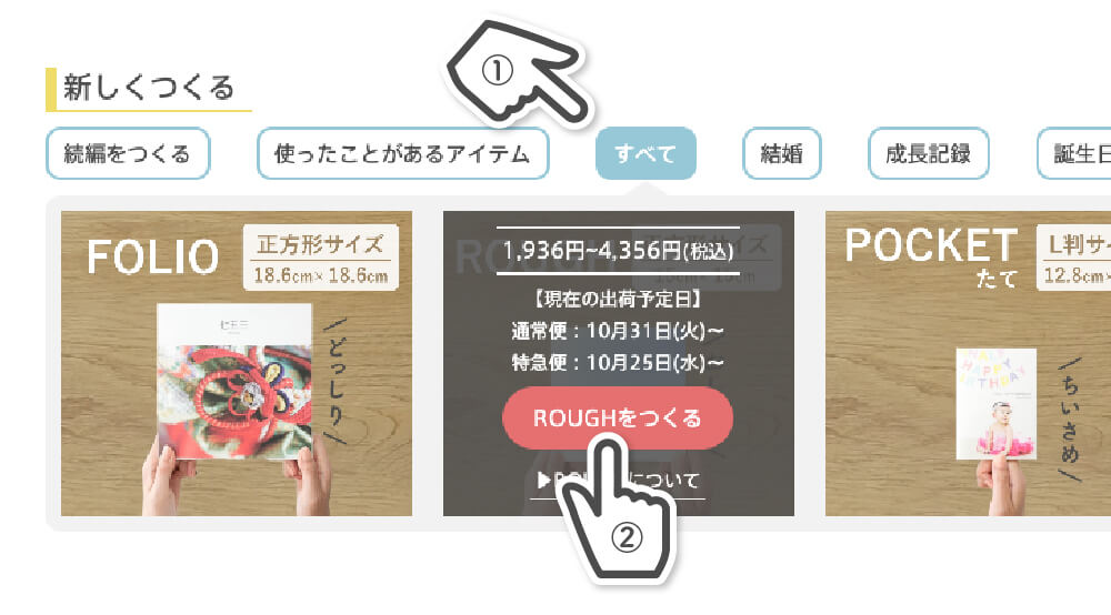 パソコンから作成できるアイテムは7種類。スマートフォンから作成される方は▶こちら