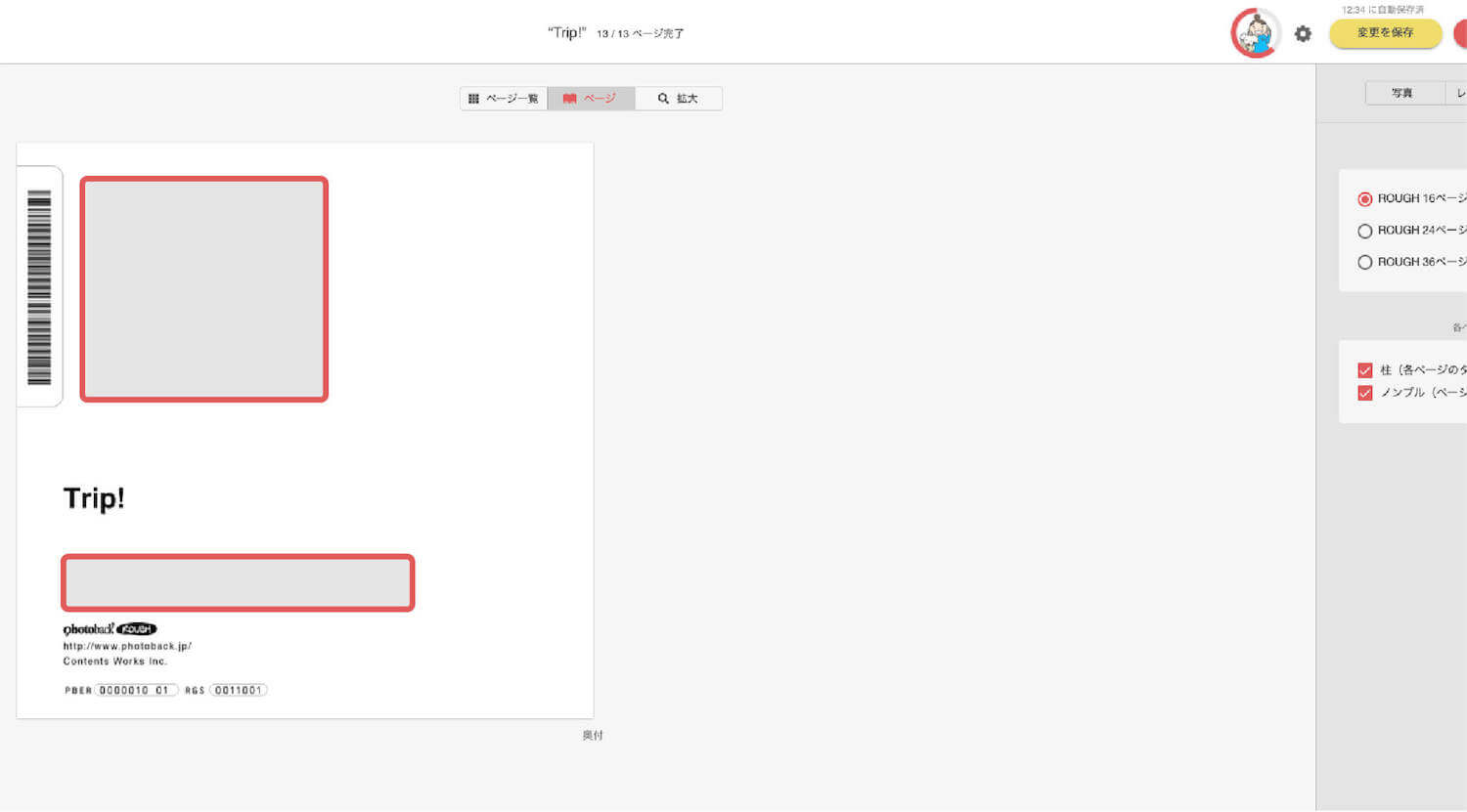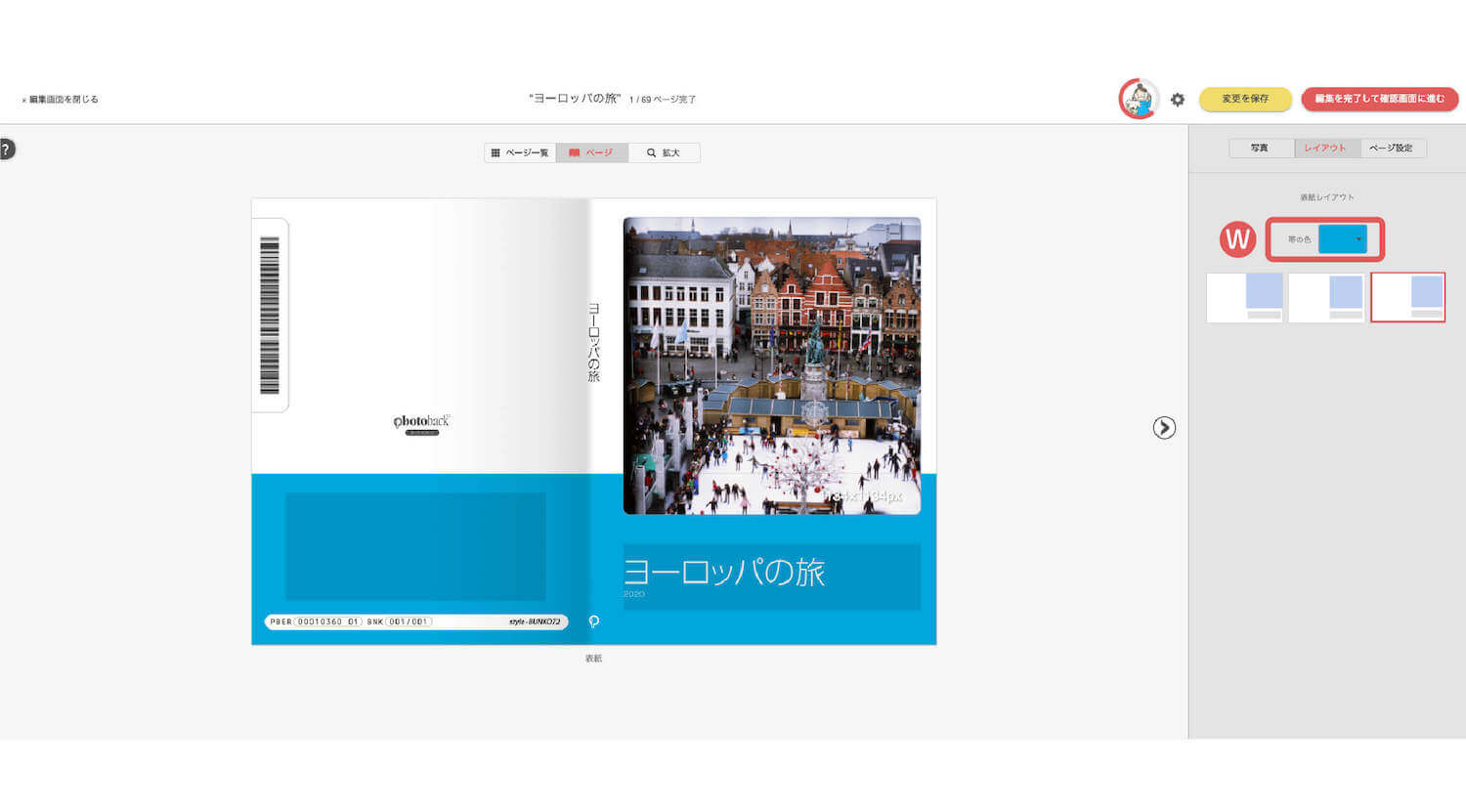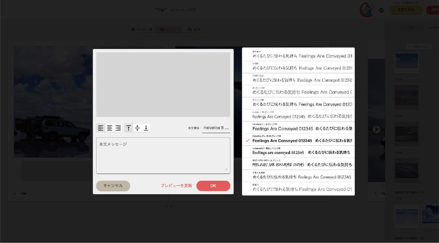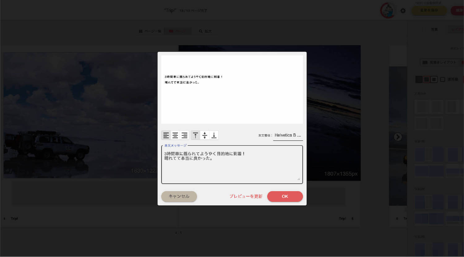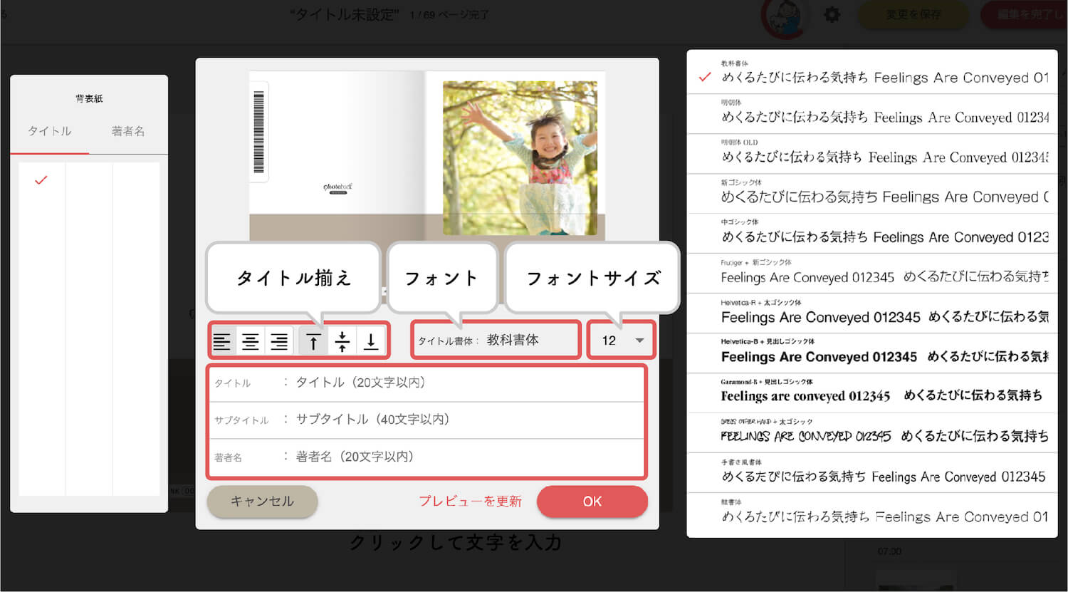 表紙の入力箇所をクリックすると、タイトルの入力、フォントなどを編集できます。