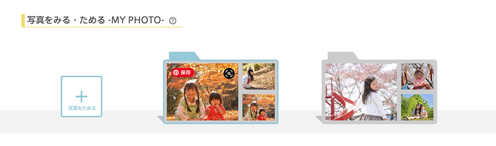 マイページの「写真をみる・ためる-MY PHOTO-(マイフォト)」にアップロードした写真は、作品ごとにフォルダ単位でまとめられます。