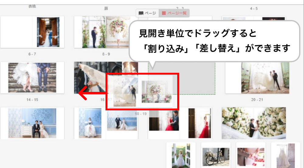 ・見開き単位でドラッグ…『割り込み』と『差し替え』 -